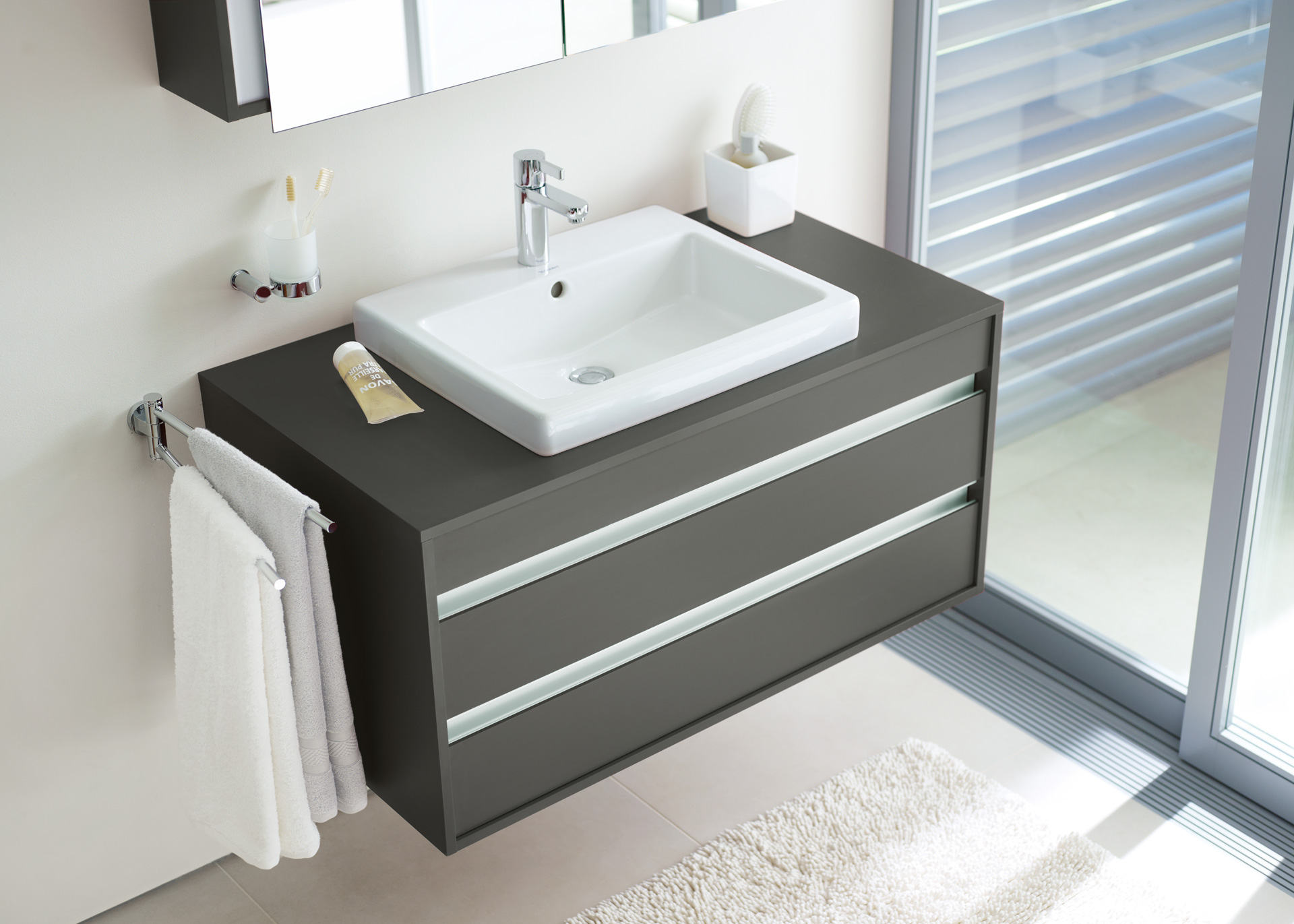 Vero y los lavabos sobre encimera con encimeras son una combinación especialmente hogareña: en la versión empotrada con bancada para grifería, el lavabo Duravit Vero se inserta desde arriba. El lavabo empotrado también se puede insertar desde abajo en cualquier material que se te ocurra. Son posibles una gran variedad de combinaciones de la serie de cerámica Duravit Vero y los muebles bajo lavabo.